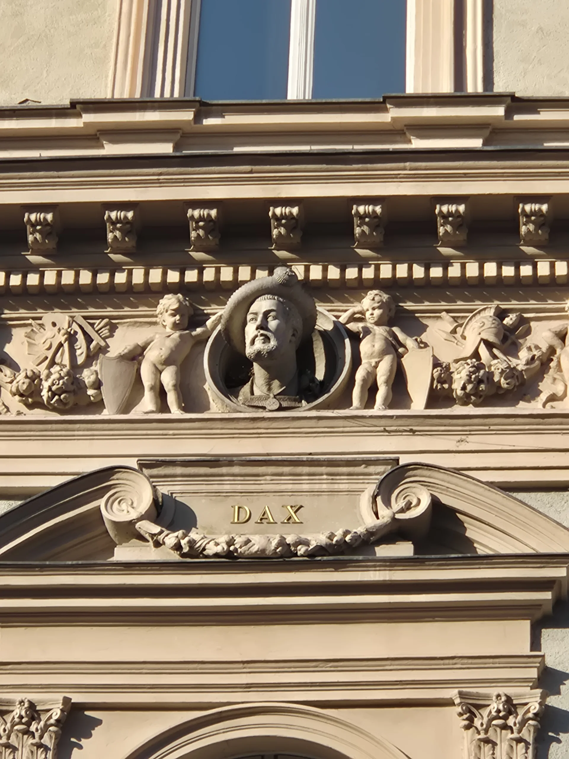 Beim genaueren Hinsehen wird deutlich, dass dieser Fassadenschmuck keinem dekorativen Zufall folgt. Zwischen dem ersten und zweiten Obergeschoss entfaltet sich ein bewusst gesetztes Programm: In Stein verewigt sind Persönlichkeiten, deren Wirken für Tirol als bedeutend erachtet wurde. Manche Namen erscheinen vertraut, andere wirken heute beinahe vergessen.