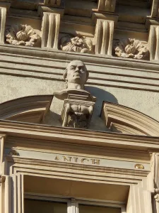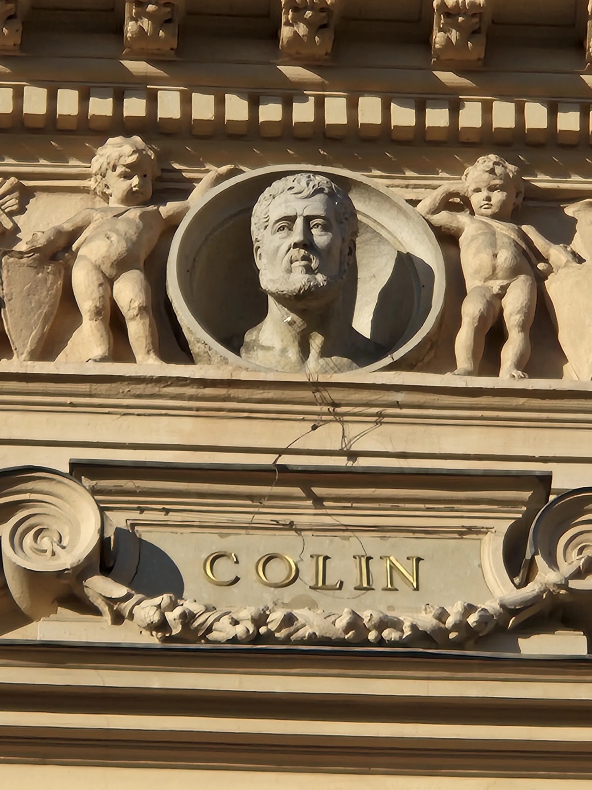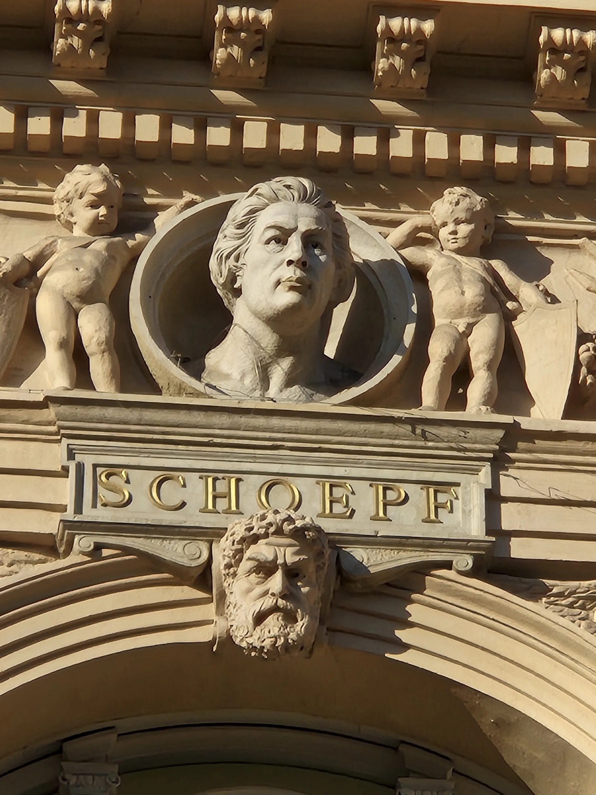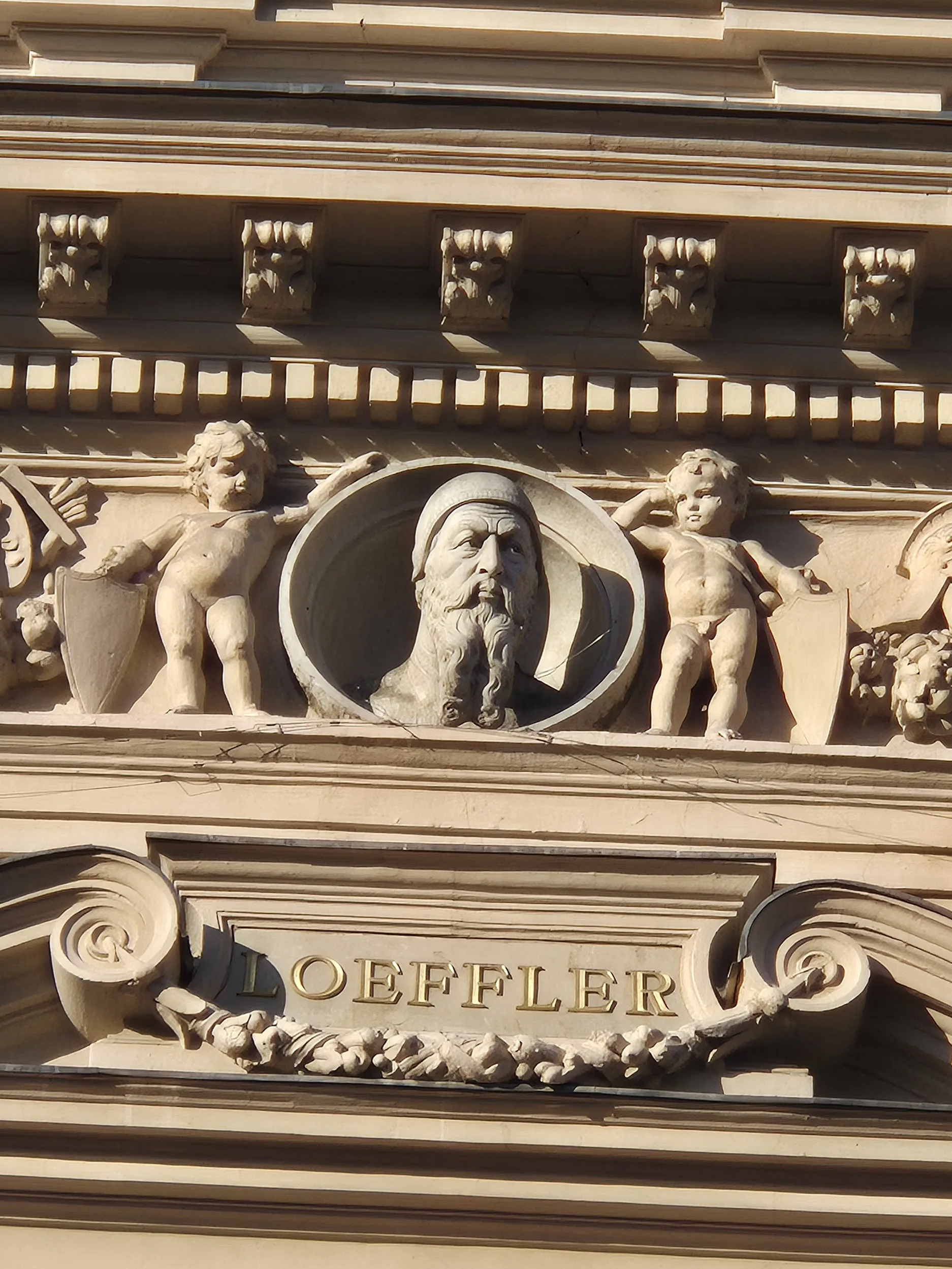 Im Fries zwischen dem 1. und 2. Obergeschosses sind folgende Künstler verewigt.